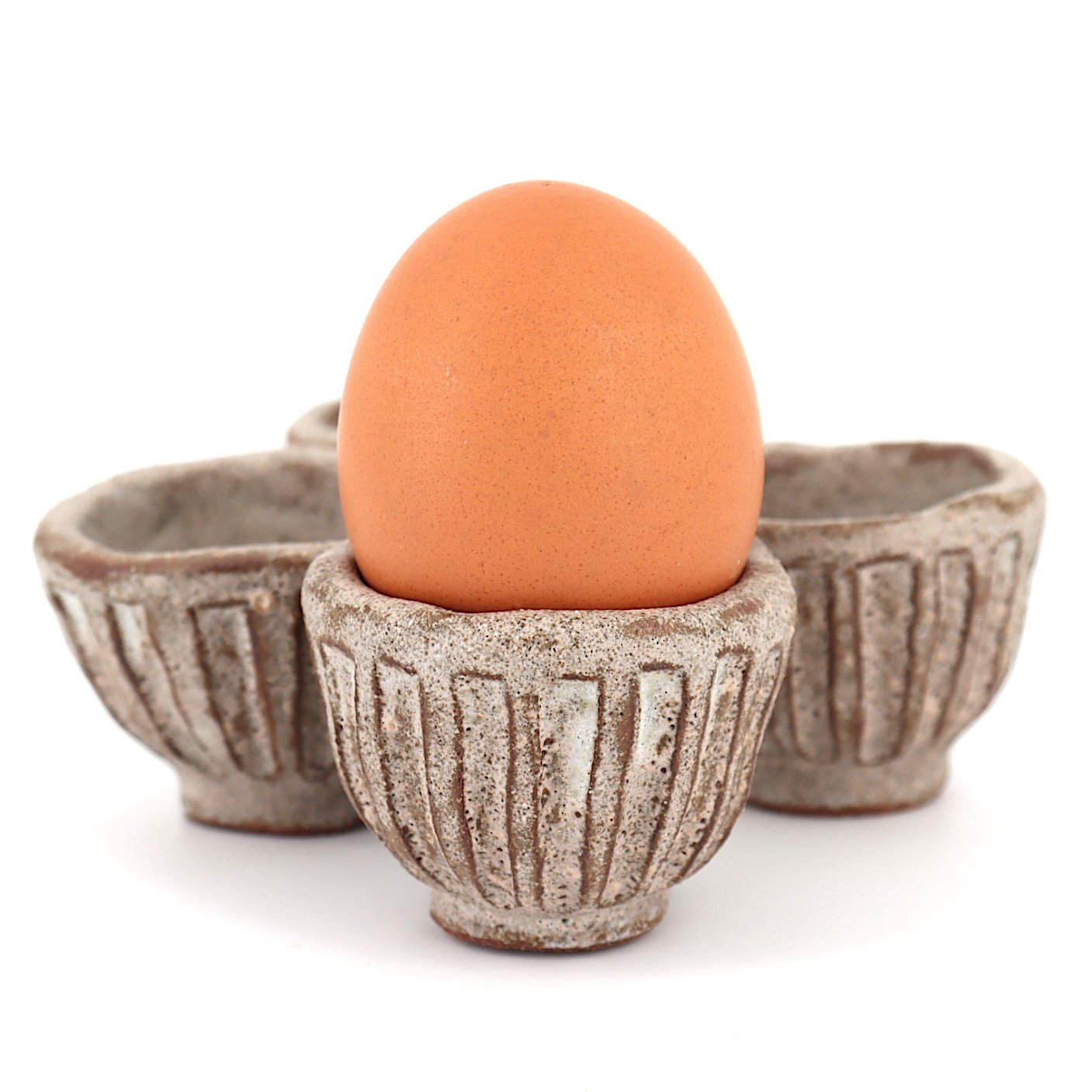 Lot de 2 coquetiers en grès, tournées et sculptés à la main.
