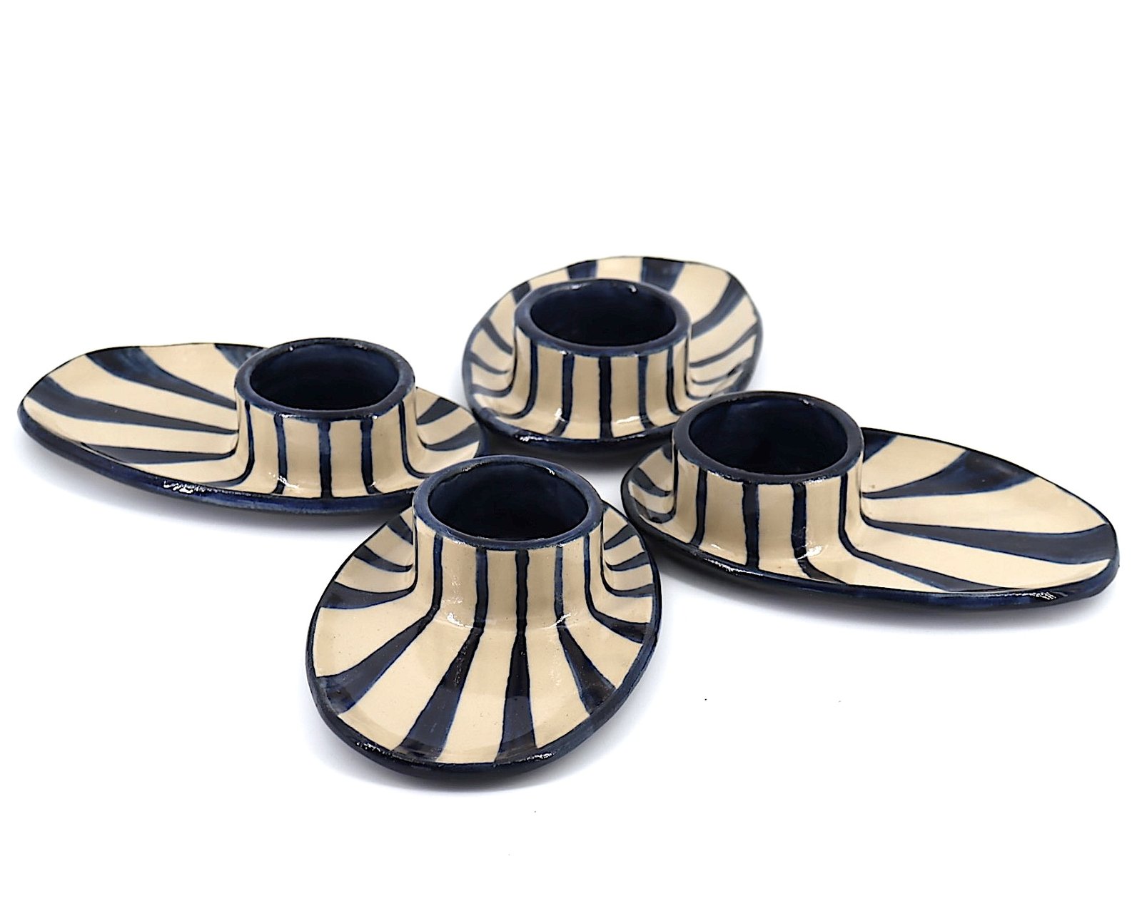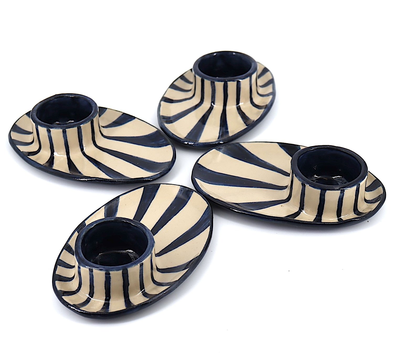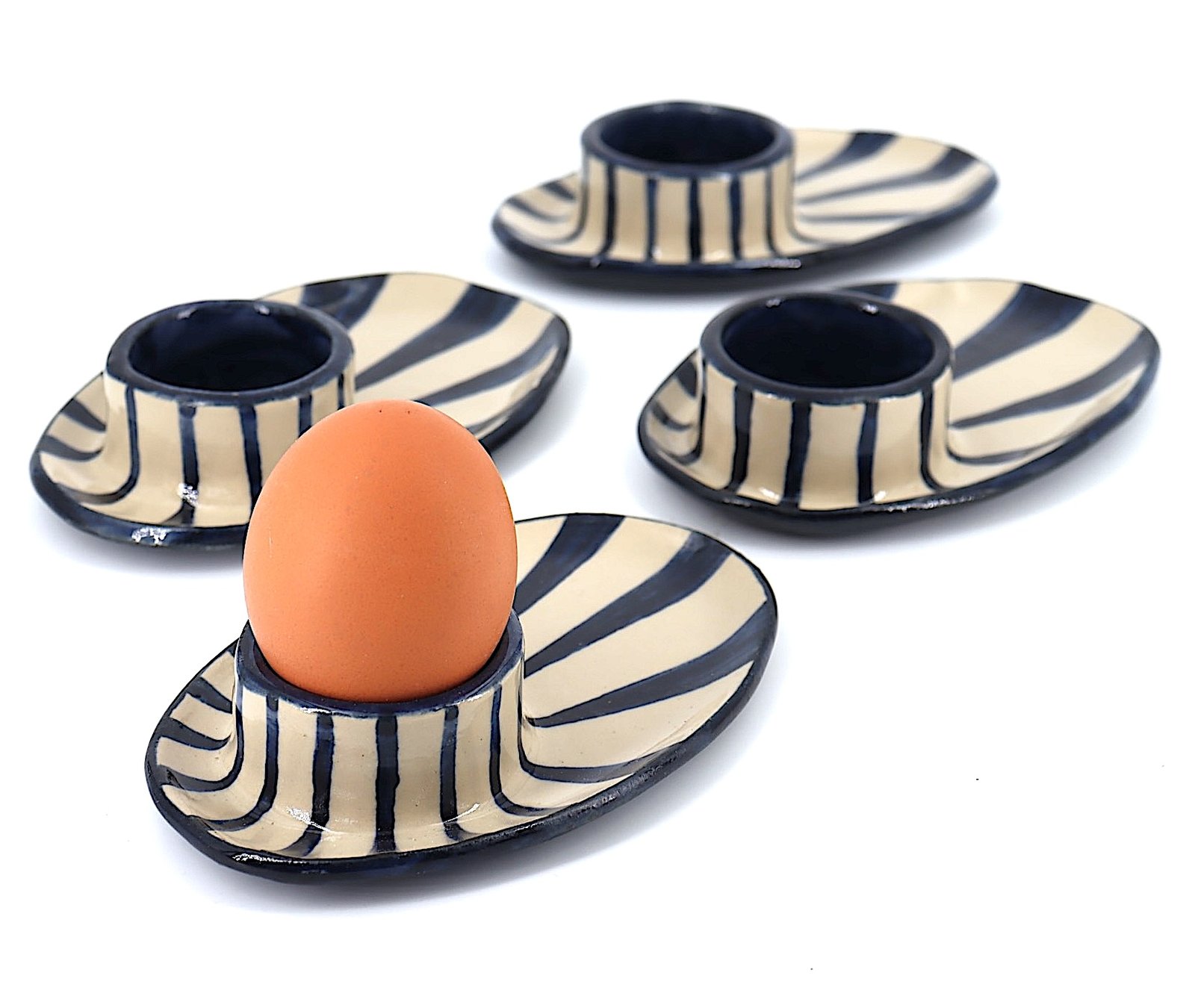 Lot de 2 coquetiers en grès, modelés et décorés à la main.