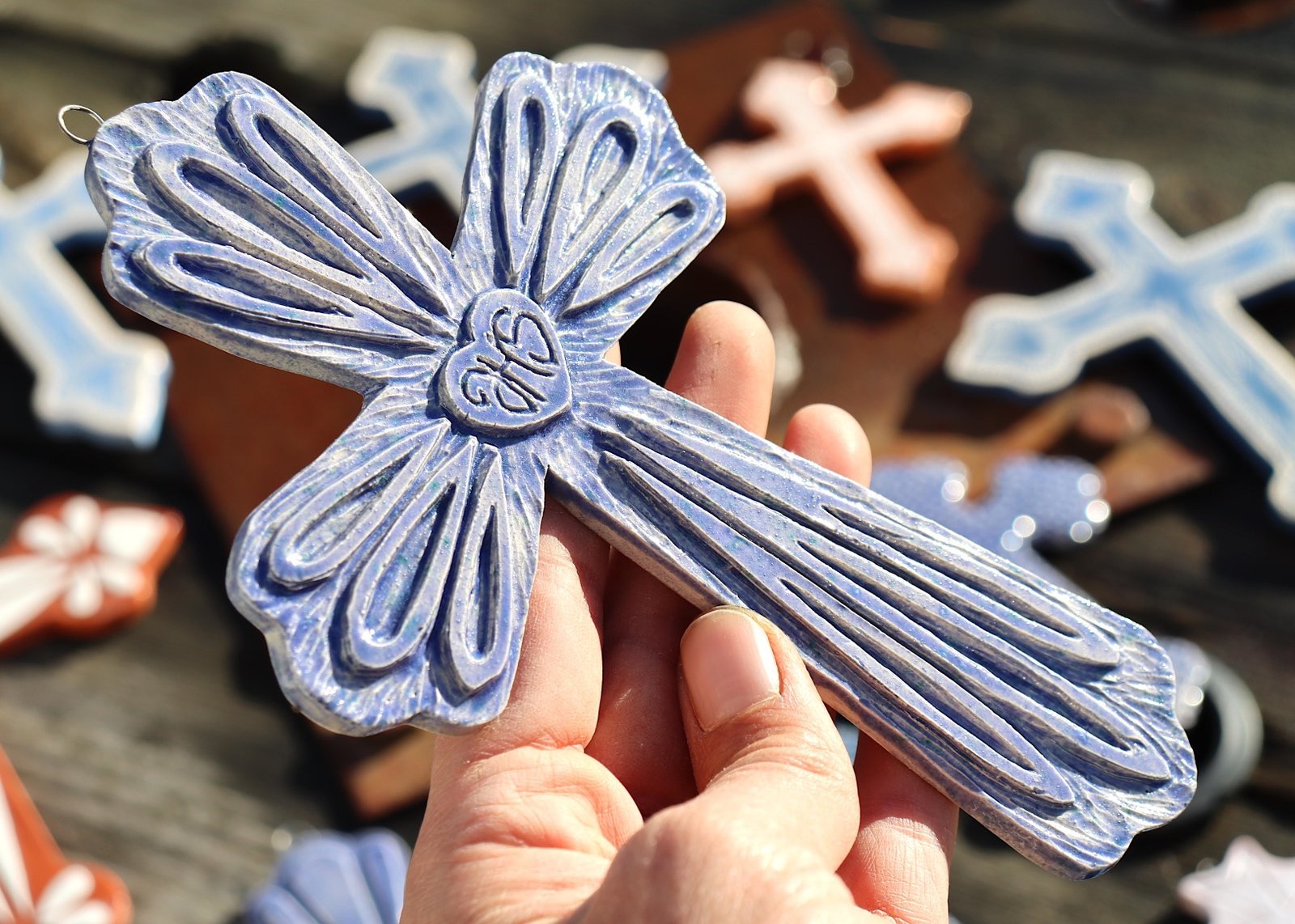 Croix en faïence émaillée