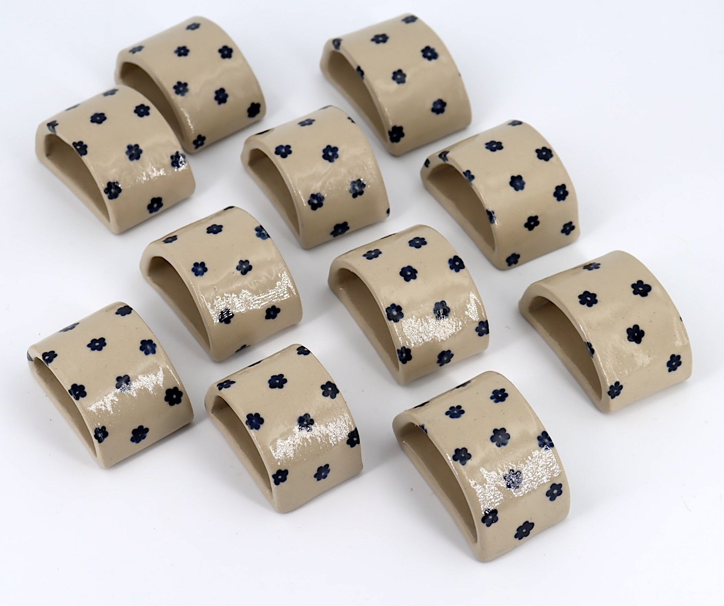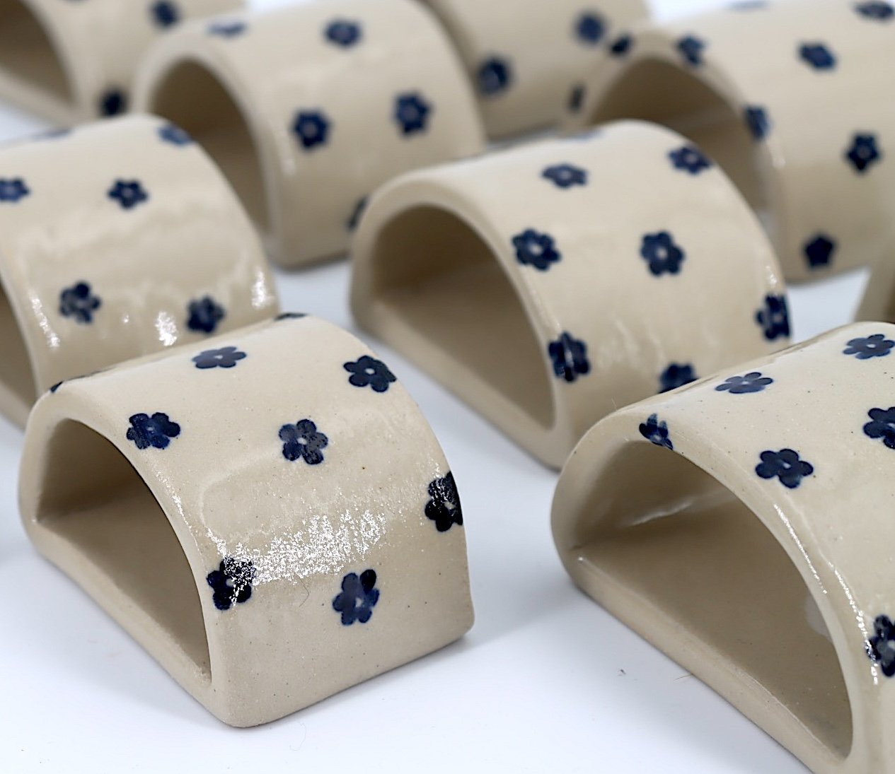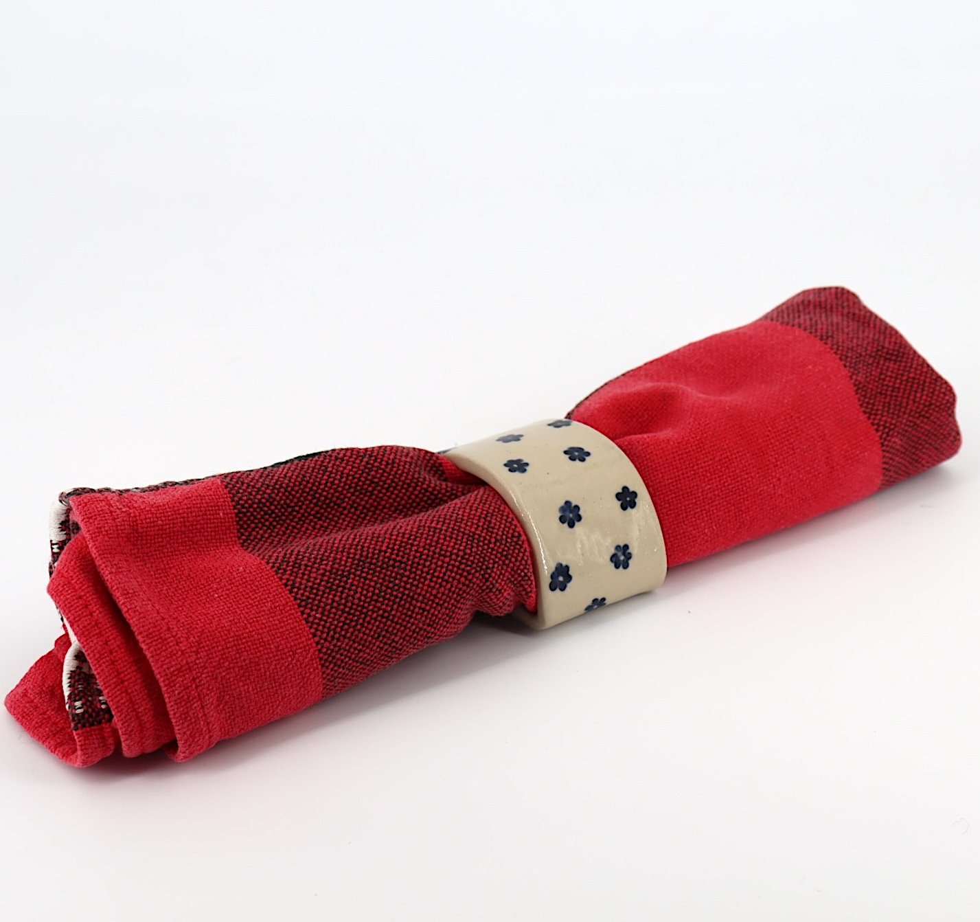 Porte-serviette en grès blanc modelé et décoré à la main.