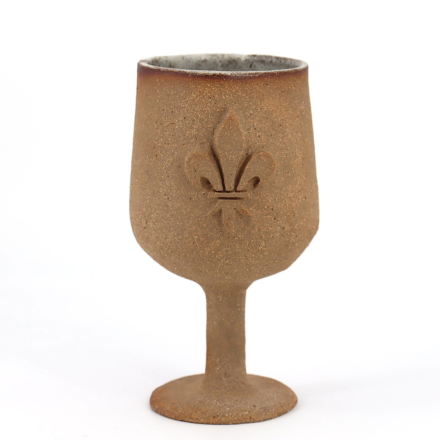 Verre à pied en grès rouge, modelé et sculpté à la main.